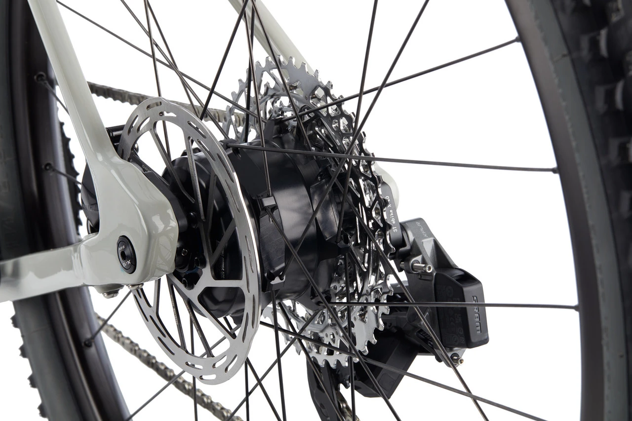 Das Exploro RaceMax Boost von 3T ist ein E-Gravelbike aus Carbon mit kraftvollem MAHLE X20-Hinterradantrieb und elektronischen SRAM Rival-XPLR-Komponenten. Zudem ist es mit agilen 27,5-Zoll-Laufrädern ausgestattet. Im Unterrohr des Rahmens verschwindet der leistungsstarke MAHLE E-Bike-Akku, der den Hinterrad-Nabenmotor betreibt. Auf dem Oberrohr befindet sich ein iWOC-Schalter, mit dem Du den Motor ein- und ausschaltest sowie zwischen den drei Unterstützungsstufen Eco, Medio und Turbo auswählst. Das kabellose PulsarONE-Display befestigst Du am Cockpit. Dank der Bildschirmdiagonale von 2,1″ ist die Bedienung denkbar einfach.