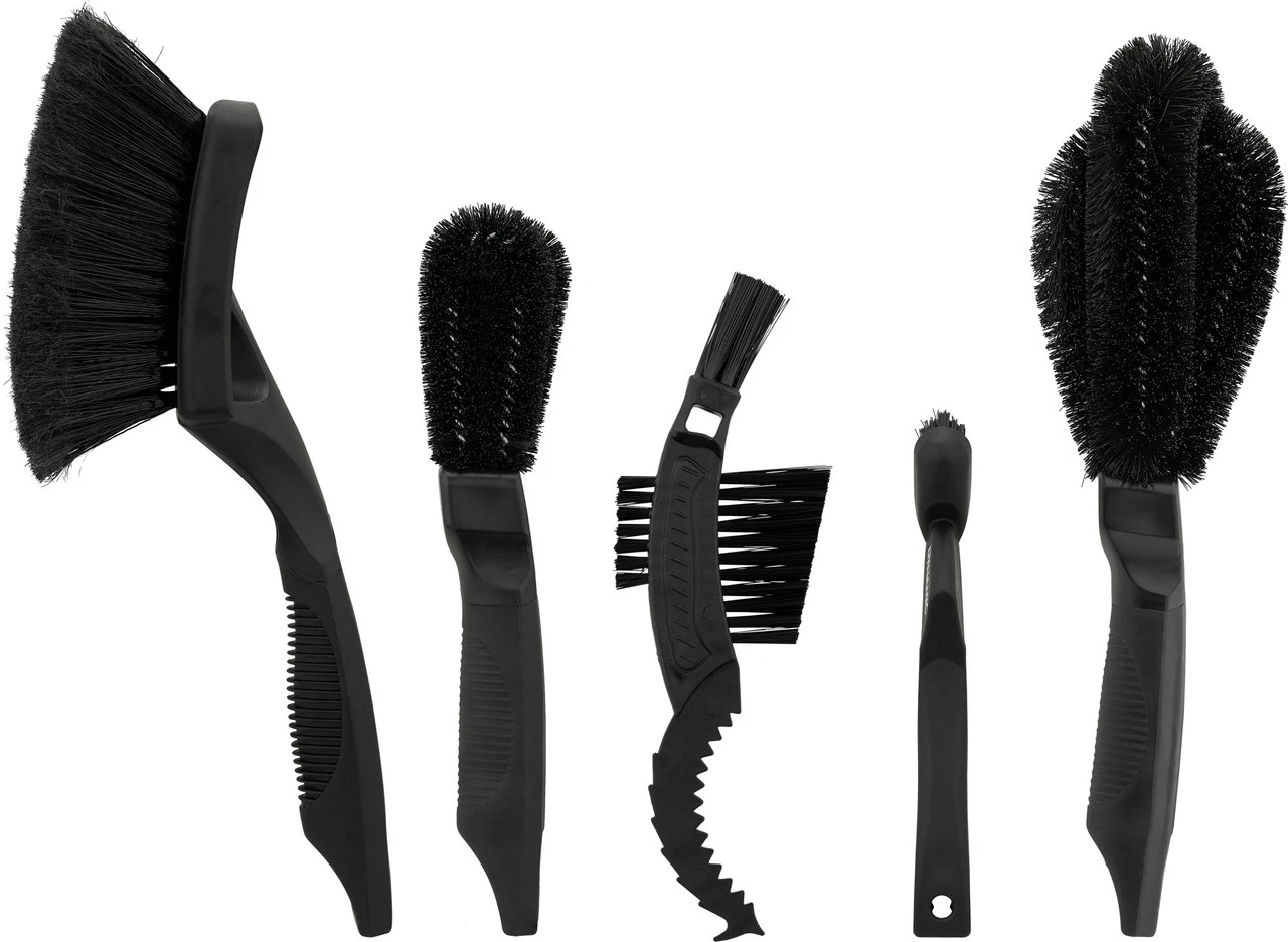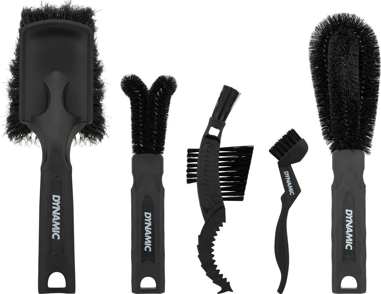 Das Band of Brushes Bürstenset von Dynamic besteht aus folgenden fünf Bürsten: Soft Washing Bürste, Wheel and Components Bürste, Two Prong Bürste, Drivetrain Detailing Bürste und Claw Bürste. Diese befinden sich in einer praktischen Box zur Aufbewahrung. Das Set eignet sich zur vollständigen Reinigung Deines Bikes, vom Rahmen bis hin zu den Antriebskomponenten.