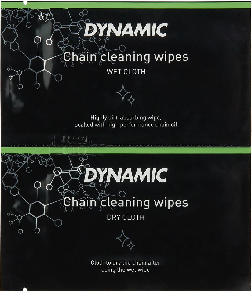 Spezifikationen:Bezeichnung:Dynamic Cleaning WipesAnwendungsbereich:ReinigungsmittelFeatures:ideal für unterwegs, passt in jede Taschereinigt und fettet die KetteÖlfilm hält ca. fünf kürzere RadfahrtenAnwendung:reinige die Kette mit dem feuchten Reinigungstuch, bis Öl, Fett und andere Verschmutzungen entfernt sinddas feuchte Tuch trägt eine schützende Schicht Öl auf, sodass die Kette leicht geschmiert istmit dem trockenen Tuch wischst Du überschüssiges Öl abGefahrstoffkennzeichnung:Keine Kennzeichnung erforderlich.