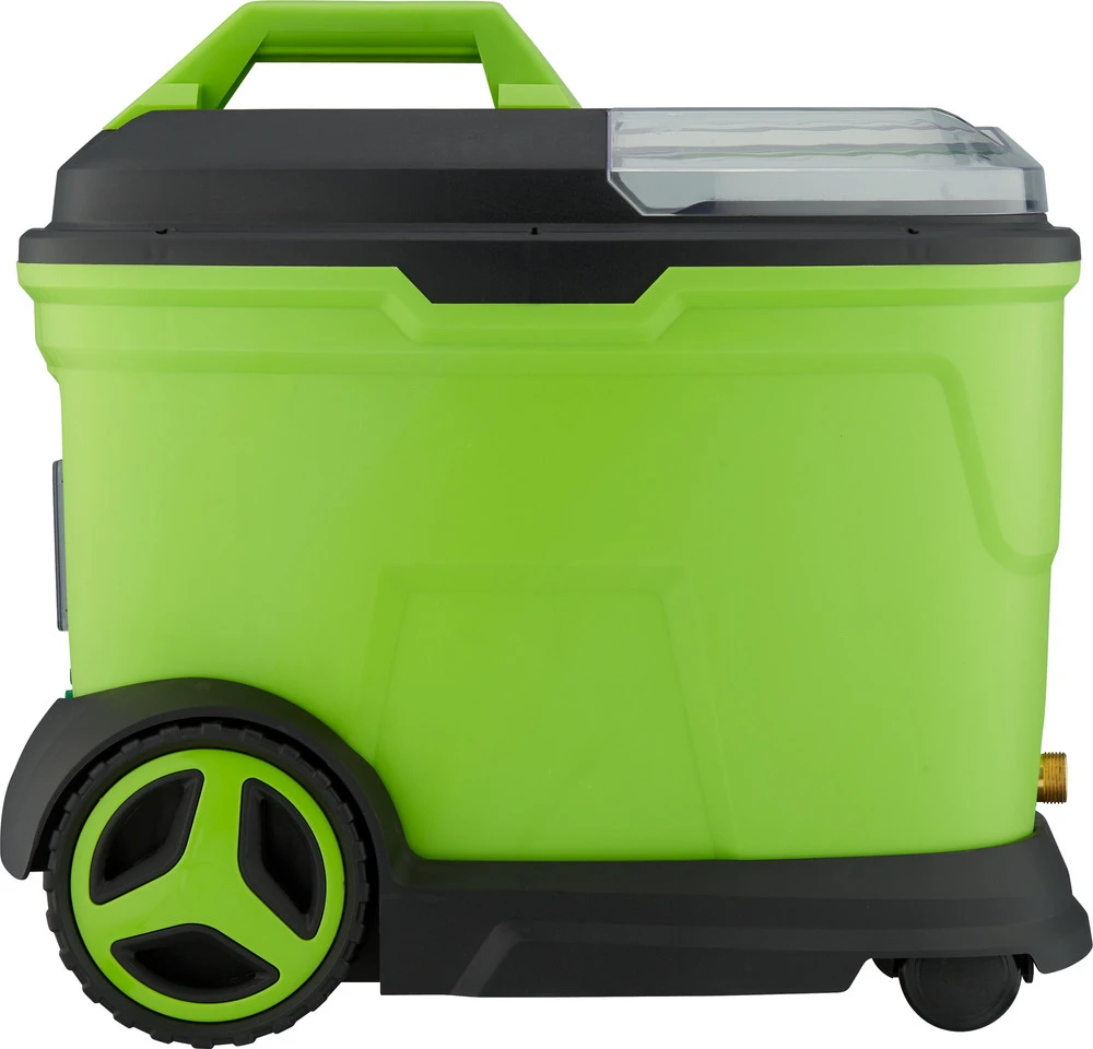 Technische Daten:Wasserdruck:30 / 40 / 60 bar (3 Stufen)Fassungsvermögen:21 LiterAbmessungen (LxBxH):46 x 32 x 43 cmSpannungseingang Akku:220 VSchlauchlänge:5 mFeatures:abnehmbarer Wasserbehälter mit 21 Liter Volumenbis zu 30 Minuten Dauerreinigung mit einer Behälterfüllung, 3,5 Liter/ min Maximalsprühleistung3-stufig verstellbarer Sprühstrahlkann überall verwendet werden, benötigt keinen festen Strom- oder Wasseranschlussmit integriertem 20 V Lithium-Ionen-Akku, dieser kann über 220 V-Anschluss geladen werden (Schnellladegerät)Räder für einfachen Transportfür bis zu 40 °C WassertemperaturHerstellernummer:GD850