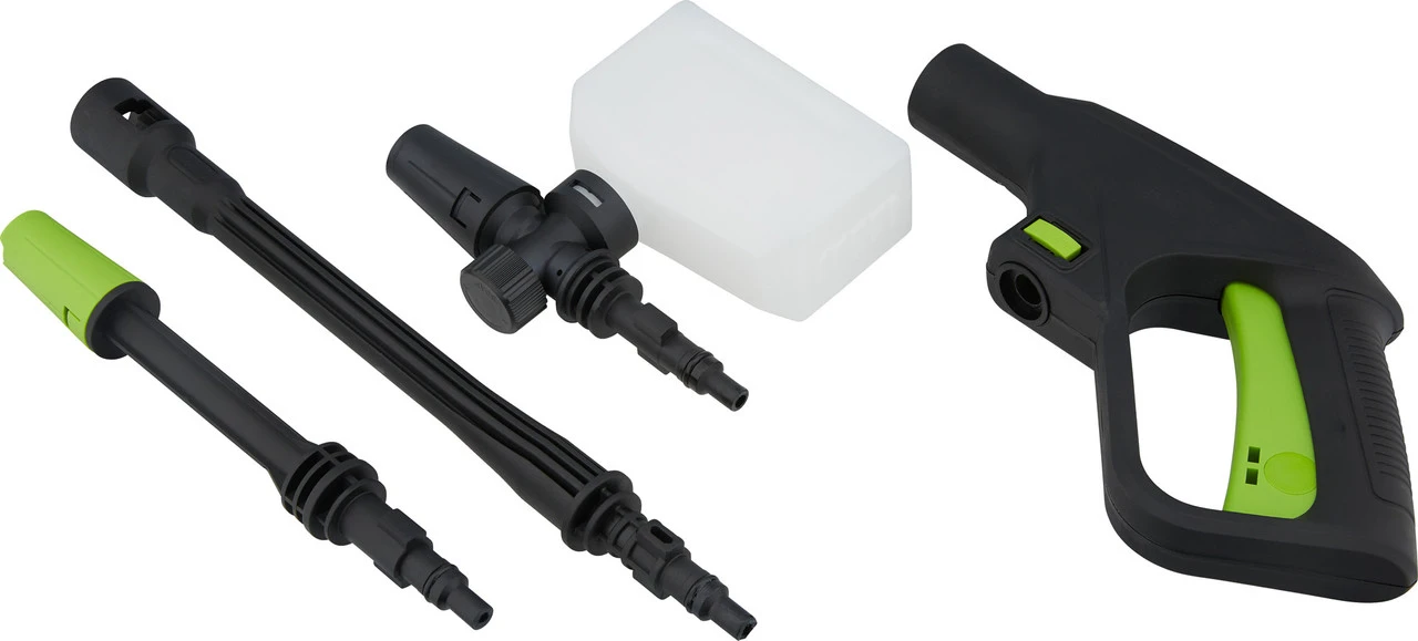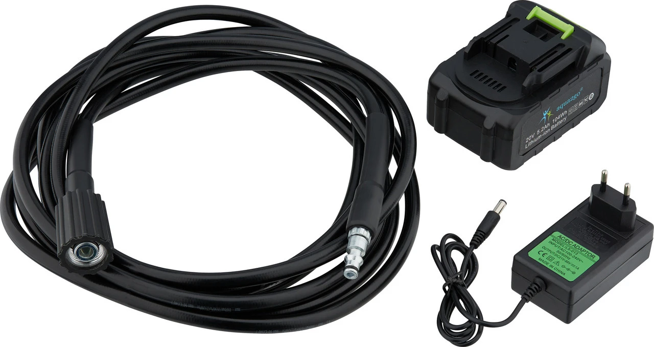 Lieferumfang:1 x Druckreiniger aqua2go1 x Wassertank, 21 Liter1 x Wasserschlauch, 5 m1 x Waschbürste1 x Spritzpistole1 x Schaumkopf1 x Netzteil 220 V1 x Akku 20 V