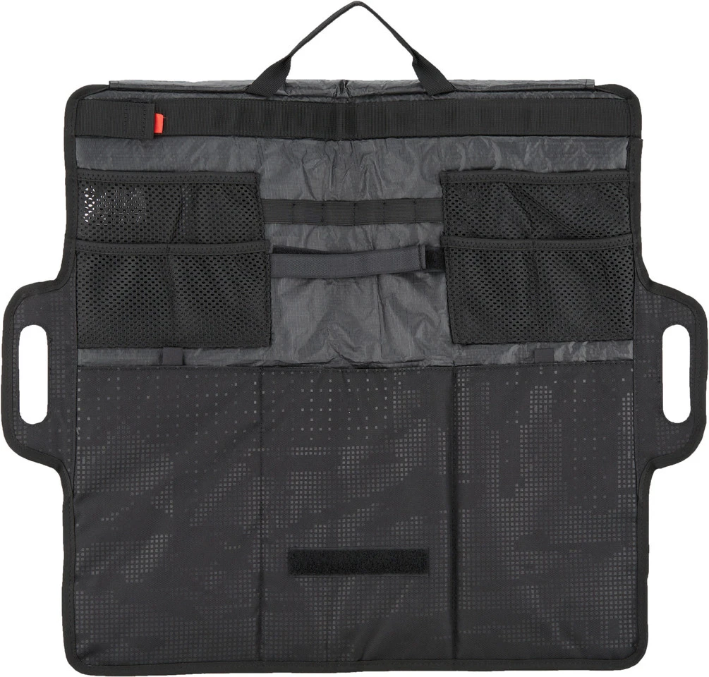 Mit der Gear Wrap Werkzeugtasche von evoc transportierst Du auf Reisen oder zu Rennen Dein Werkstattzubehör. Auch Dein E-Bike-Akku und mehr transportierst Du mit dieser Tasche sicher. Die Tasche rollst Du für den Transport platzsparend zusammen. Ausgerollt kannst Du sie aufhängen und hast so einen übersichtlichen Zugriff zu Deinem Werkzeug.