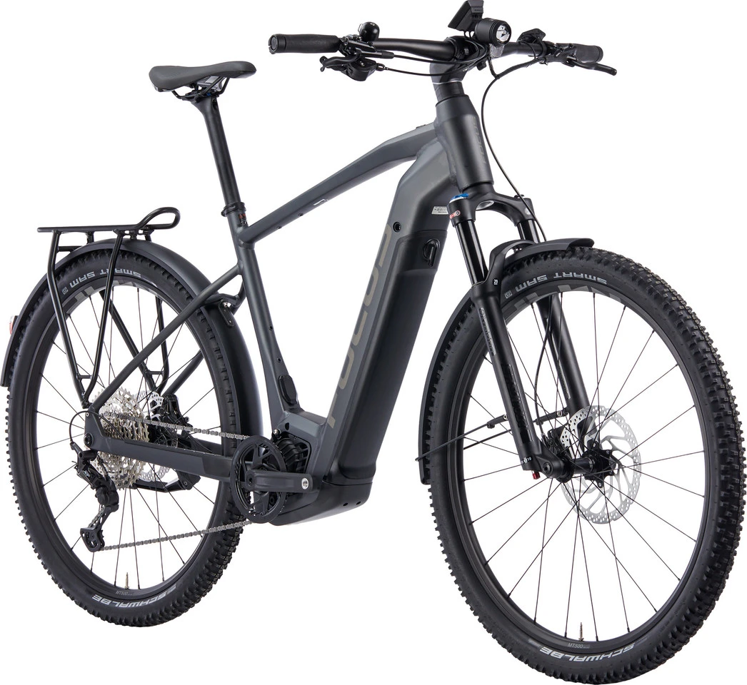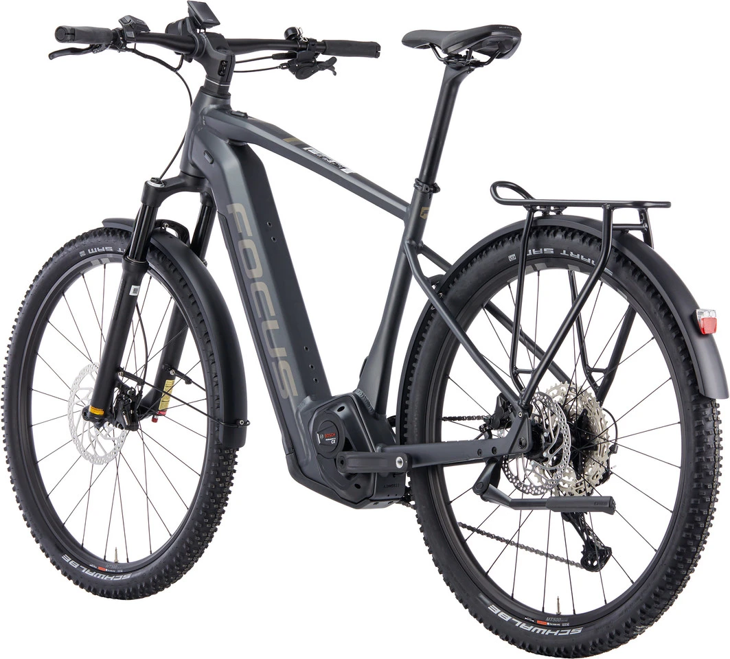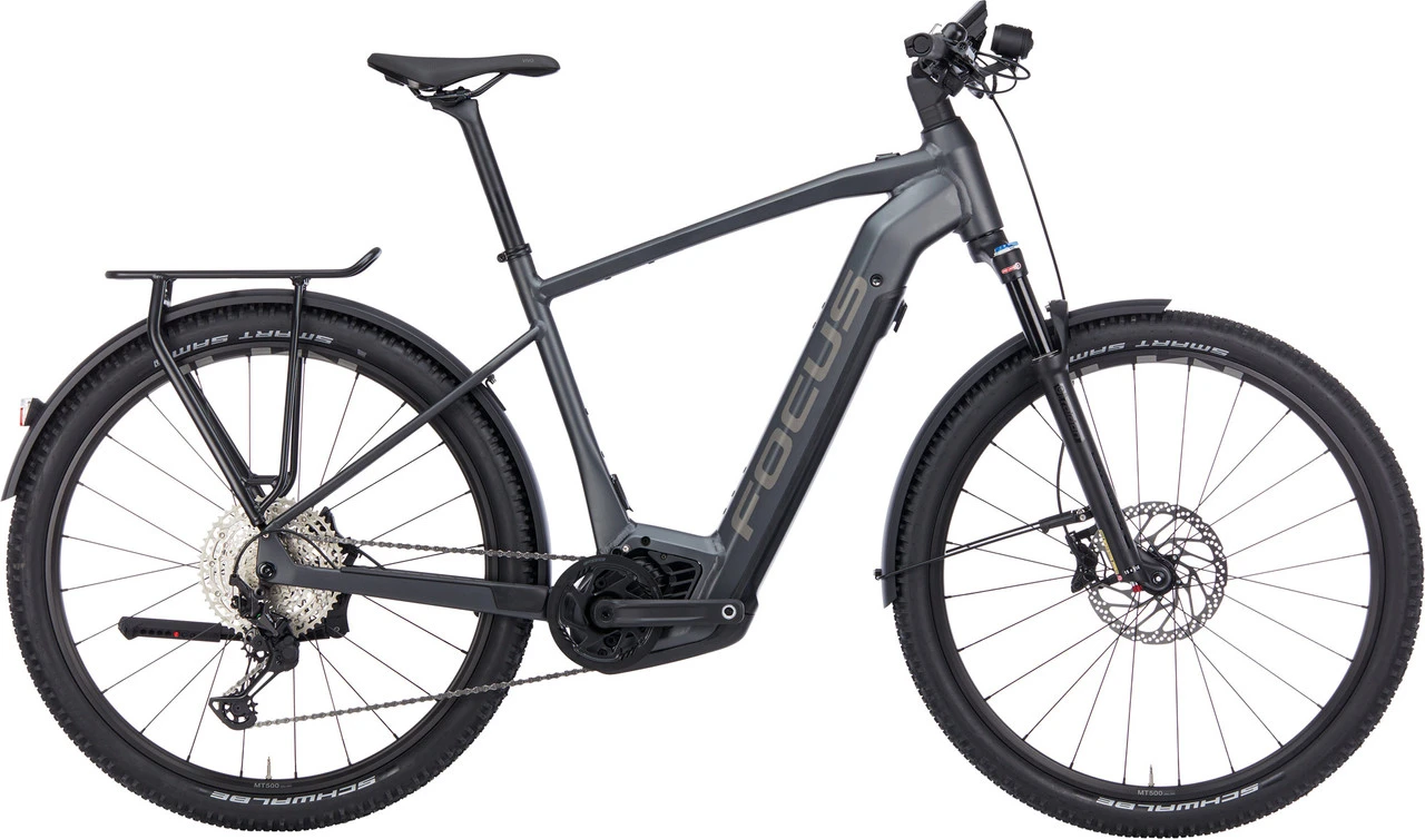 Spezifikationen:Einsatzbereich:City, Touring & TrekkingLaufradgröße:29″Größen:S, M, L, XLMaterial Rahmen:Aluminium (7005)Material Gabel:Aluminium, MagnesiumE-Antrieb:Ausführung:MittelmotorMotortyp:Bosch Performance CX Smart, 85 NmUnterstützung max.:25 km/hLeistung:250 WAkkutyp:Bosch Powertube, 36 V, abnehmbar, abschließbarKapazität:750 Wh (13,4 Ah / M, L, XL), 625 Wh (17,4 Ah / S)Display:Bosch LED Remote + Kiox 300Komponenten:Rahmen:FOCUS AVENTURA², Diamond Frame Type, hydrogeformtes Aluminium, 3D-geschmiedet, USB-C-Port, Postmount 180 mm, 12 x 148 mm Steckachse (Boost)Gabel:SR Suntour Raidon 34 LOR Air, 100 mm Federweg, 515 mm Einbaulänge, 51 mm Vorlauf, 15 x 110 mm (Boost)Vorbau:FOCUS C.I.S. integriert, 60 mm 30°, 35 mm Lenkerklemmung, AluminiumLenker:FOCUS, Aluminium, 760 mm, Flatbar, 9° Backsweep, 35 mmSteuersatz:Acros ZS56/ZS56 (ICR), FOCUS C.I.S. integriertSattelstütze:FOCUS, Aluminium, 31,6 mm, 350 mmSattel:Selle Royal VivoKurbel:FSA CK-320, Aluminium, 170,0 mm, 36 Z, Innenlager integriert in MotoreinheitPedale:MTB, mit ReflektorenBremsen/Bremshebel:Shimano MT420, 4 Kolben, hydraulische Scheibenbremse, 203 mm/180 mmSchalthebel:Shimano Deore M6100, 12-fachSchaltwerk:Shimano Deore XT M8100, 12-fachKassette:Shimano Deore CS-M6100, 12-fach, 10-51 ZKette:Shimano 12-fachSchutzbleche:Büchel, Aluminium, 60 mm, pulverbeschichtetScheinwerfer:Litemove AE130 High-Beam, 130 LuxRücklicht:Herrmans H-Trace MiniParkstütze:Hinterbauständer, einstellbar, 40-mm-DirektmontageFelgen:Shimano WH-MT501, 24-622Speichen:EdelstahlVorderradnabe:Shimano, 15 x 110 mmHinterradnabe:Shimano, 12 x 148 mmReifen:Schwalbe Smart Sam 29 x 2,25″ , 57-622Freigaben:Gewichtsbeschränkung:150 kg SystemgewichtBremsscheibengröße max.:203 mm (HR)Reifengröße max.:57-622 (mit Schutzblechen)Kettenblattanzahl:1-fachKettenblattgröße max.:1-fach 36 ZFeatures:voll ausgestattetes E-Bike für den Alltags-, Stadt- und FreizeiteinsatzBosch Smart-System mit Performance-CX-Antrieb, Kiox-300-Display und 750-Wh-Akku (Größe S: 625 Wh)Akku formschön im Unterrohr integriert, zum Laden herausnehmbarFedergabel mit 100 mm Federweg und 57 mm breite MTB-Reifen für mehr Komfortstabile Metallschutzbleche, Hinterbauständer und LichtanlageRacktime Snap-It Gepäckträger, 2-beinig, mit 25 kg maximaler Zuladungkomfortables Cockpit mit C.I.S.-Vorbau mit integrierter Kabelführungverlässliche Shimano Deore / XT 12-fach-SchaltungUSB-C-Anschluss zum Aufladen des Smartphones oder NavigationssystemsEN-Klassifikation 2: Fahrrad für Freizeitfahrten unter moderater Anstrengung, für befestigte Oberflächen und unbefestigte Straßen oder Schotterwege moderater Einstufung, Drops von höchstens 15 cm, Durchschnittsgeschwindigkeit 15 bis 25 km/hTechnologie:C.I.S.