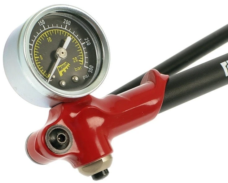 Die Dämpferpumpe von Magura ermöglicht Dir Pumpvorgänge bis 20 bar und das auf Grund des speziellen Ventils ganz ohne jeglichen Luftverlust. Ein gut ablesbares Manometer informiert Dich jederzeit über den aktuellen bar bzw. psi-Wert.