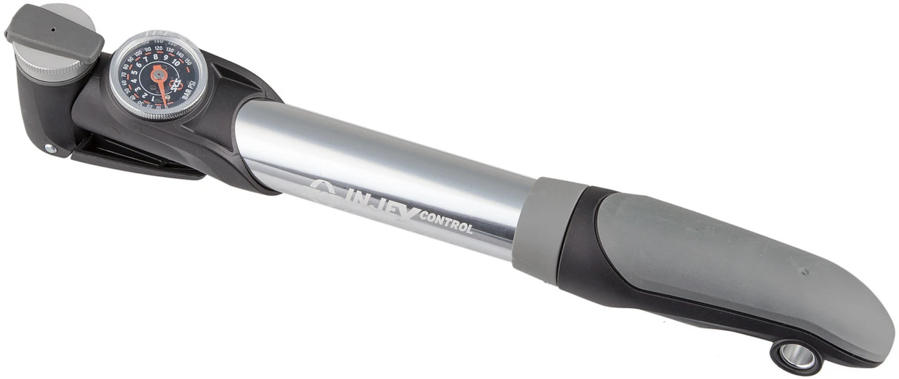 Die Injex Control ist die neueste Pumpe aus der erfolgreichen Injex-Familie. Sie ist mit einem kleinen, analogen Rundmanometer am Ende des hochwertigen Aluminium-Kompressionsrohrs ausgestattet. Der integrierte E.V.A-Pumpenkopf passt auf alle Ventilarten. Die Teleskopfunktion und der T-Klappgrifff sorgen für ein optimales und angenehmes Pumpen bis 10 Bar.