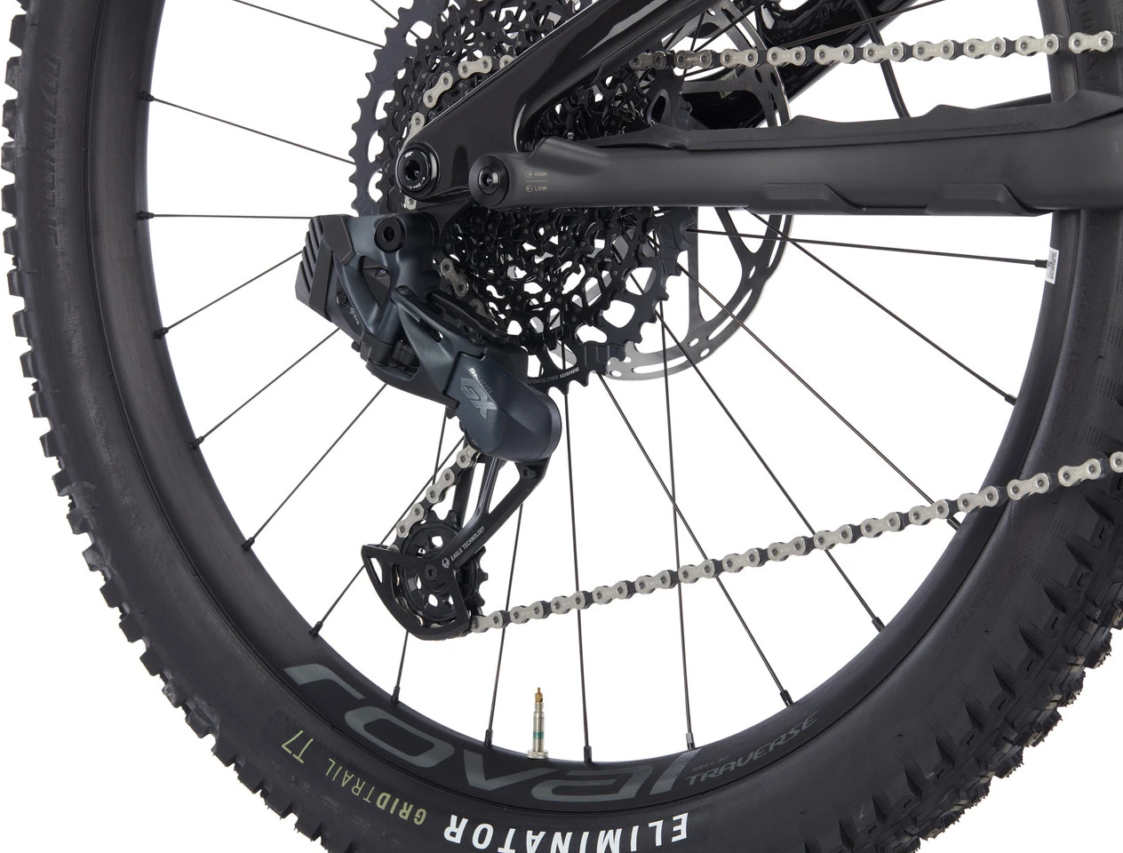 Komponenten:Rahmen:Specialized Turbo Levo, FACT™-Vollcarbon, gedichtete Industrielager, 12 x 148 mmGabel:Fox Racing Shox Float 38 Performance Elite, GRIP2-Dämpfung, HSC, LSC, HSR, LSR, 1,5″ tapered, 44 mm Vorlauf, 15 x 110 mmVorbau:Specialized Trail, Aluminium, 35 mmLenker:Specialized Trail, Aluminium (7050), 800 mm, 8° Backsweep, 6° Upsweep, 30 mm Rise, 35 mm KlemmungGriffe:Deity Knuckleduster, schwarzDämpfer:Fox Racing Shox Float X2 Performance Elite, LSC, LSR, 2-Positionen-Hebel, 55 x 210 mmRemote System:ohneSteuersatz:Specialized S182500005Sattelstütze:OneUp Components Dropper Post V2, MMX, 34,9 mm, Hub: 150 mm (S3) / 180 mm (S4)Sattel:Specialized Bridge Comp, hohle CrMo-StahlstrebenKurbel:Praxis Works M30, geschmiedet, Custom Offset, 160,0 mm, mit SRAM X-Sync Eagle Kettenblatt, 104 BCD, 34 Z, StahlPedale:ohneBremsen:SRAM Code RS, 4 Kolben, hydraulische Scheibenbremse, 200 mm (VR, S3) / 220 mm (VR, S4) / 200 mm (HR)Schalthebel:SRAM GX Eagle AXS ControllerSchaltwerk:SRAM GX Eagle AXS, mit AkkucoverKassette:SRAM XG-1275, 12-fach, 10-52 ZähneKette:SRAM GX Eagle, 12-fachFelgen:Traverse 29″ (VR) / Traverse 27,5″ (HR)Speichen:TraverseVorderradnabe:TraverseHinterradnabe:TraverseReifen Vorderrad:Specialized Butcher, Grid Trail Karkasse, GRIPTON®-T9-Gummimischung, 2Bliss Ready, 29 x 2,6″Reifen Hinterrad:Specialized Eliminator, Grid Trail Karkasse, GRIPTON®-T7-Gummimischung, 2Bliss Ready, 27,5 x 2,6″Freigaben:Gewichtsbeschränkung:125 kg (Fahrer + Gepäck)Bremsscheibengröße max.:220 mmReifengröße max.:29 x 2,6″ (VR), 27,5 x 2,6″ (HR)Kettenblattanzahl:1-fachKettenblattgröße max.:1-fach 36 Zähne (ohne Kettenführung), 1-fach 34 Zähne (mit Kettenführung)Features:starkes E-Trailbike mit einstellbarer GeometrieMullet-Aufbau mit 29-Zoll-Vorderrad und 27,5-Zoll-Hinterrad, dadurch laufruhig, aber wendiger als reine 29-Zoll-Bikesanpassbare Geometrie: Tretlagerhöhe hoch / tief, Lenkwinkel steil / mittel / flachverstärkt Deine Leistung um das 4-FacheRxTune: ausgeklügelte Abstimmung der Federung für reaktionsschnelles Fahrverhaltenhervorragende Performance über den gesamten Federwegmoderne, progressive Geometrieviel Platz am Cockpit, kurze Kettenstreben, niedriges Tretlager, wenig Gabel-OffsetFarbdisplay: die wichtigsten Daten und Parameter während der Fahrt im BlickMotorunterstützung während der Fahrt in 10-%-Schritten konfigurierbarinterne KabelführungSWAT™ CC Gabelschaft mit integriertem Werkzeug (Kettennieter)Standard-Schläuc