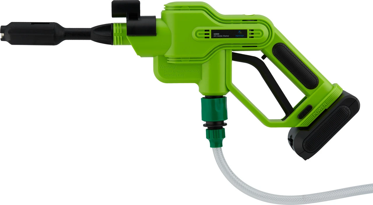 Lieferumfang:1 x Druckreiniger aqua2go1 x Sprühlanze1 x Düsenkopf1 x Saugschlauch1 x Lithium-Ionen-Akku, 20 V 2500 mAh1 x Netzladegerät1 x Transportkoffer1 x Leuchte6 x Dichtring