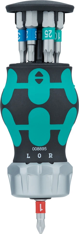Spezifikationen:Funktion:SchraubwerkzeugWerkzeugtyp:SchraubendreherAusführung:Innensechskant, Torx, KreuzWerkzeugaufnahme:Sechskant 1/4″Technische Daten:Material:Stahl, KunststoffFeatures:kompaktes 8-teiliges Schraubwerkzeug-Set für Fahrradanwendungen, auch für den mobilen Einsatzextra kleiner Bit-Handhalter für Arbeiten an schwer zugänglichen StellenRatschenfunktion mit geringem Rückholwinkel durch Feinverzahnungvakuumeisgehärtete Edelstahl-BitsInnensechskant: 2,5, 3, 4, 5 mmTorx: T10, T25Kreuz: PH1sicherer Sitz der Bits durch magnetischen BithalterBit-Magazin in den Griff integriertHerstellernummer:05004185001